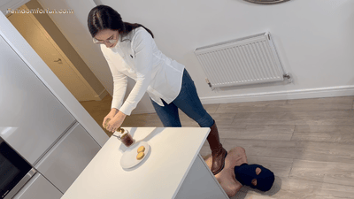 Miss Anna just had just come home from work and was quite excited. She was in the mood to play and called one of her slaves over. Before the slave came, she went in to freshen up. She is a clean freak and detests anything that is dirty. When she came out she found the slave was waiting for her. One look at the slave and she noticed right away that he was dirty and had not showered. She was very mad at him and decided to punish him. She started jumpimg on him with such force. She continues to trample on him even when he protested.